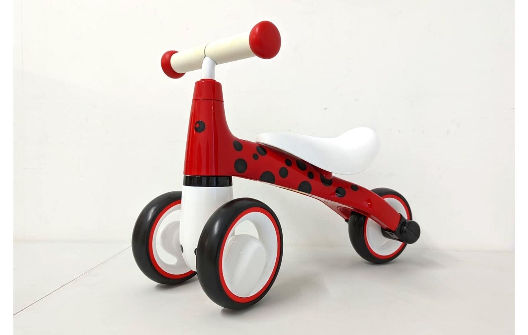 Help your little one find their footing with our Balance Bike, perfect for toddlers 12 months +. Its sturdy, lightweight frame and three-wheel design offer extra stability as your child learns to steer and balance. With a cushioned white seat, easy-grip red handlebars, and non-slip wheels, this cheerful baby balance bike turns every first ride into a safe, confidence-building adventure.